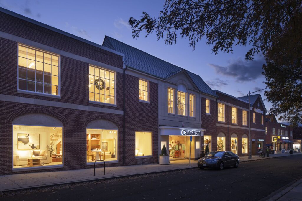 - Anchored by high-end international furniture and home decor retail store Crate & Barrel as their only location in DC proper